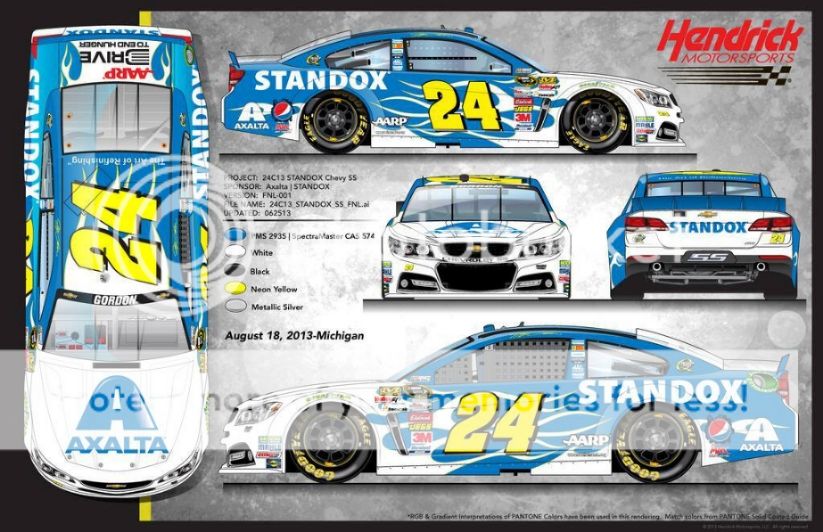 2001, 2002, 2003, 2004, 2005, 2006, 2007, 2008, 2009, 2010, 2011, 2012 and 2013.This car is freaking sharp. The people complaining, really? Look at Danica's standard... ZZZ... boring! There are 3 sometimes 4 cars in the field with the white pinstripes down the middle. Do NOT tell me this "is getting old"